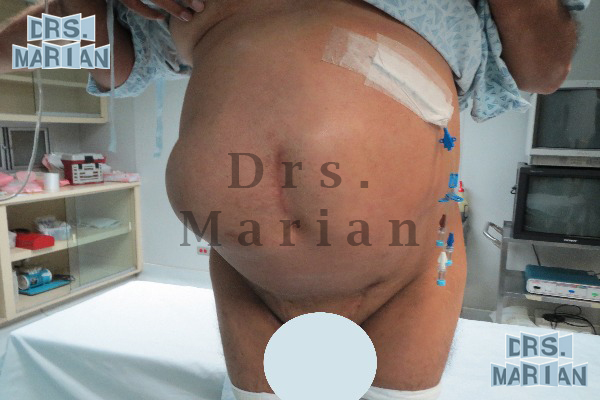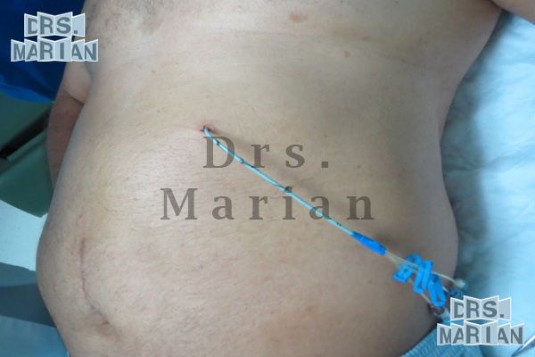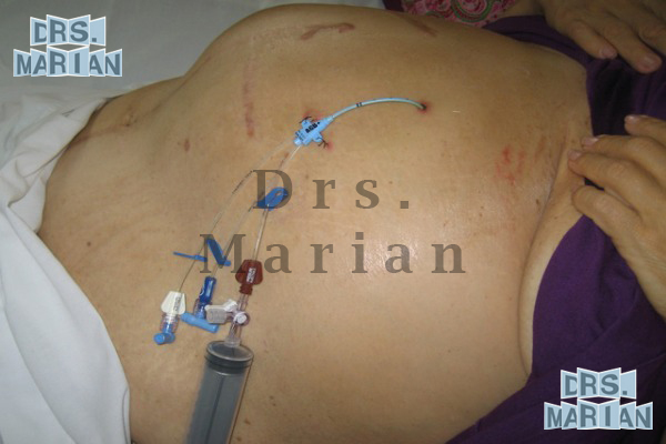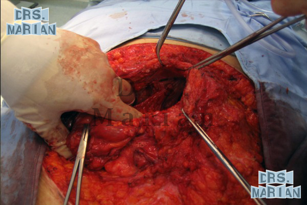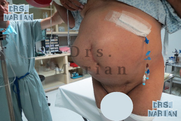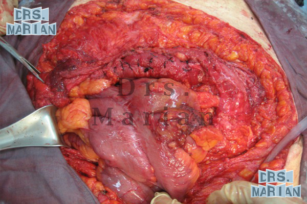 This type of hernia deserves a special mention, since the treatment starts from the preoperative management with the intra-abdominal catheter placement for the creation of a pneumoperitoneum (Introduction of air into the abdominal cavity). Depending on the case, if it were to apply one to two weeks before (there are reports of up to 3 months before) This has several functions, such as the pneumatic dissection of adhesions, the increase in volume of the abdominal cavity to facilitate the reintroduction of the viscera during surgery, in addition to providing the proper voltage for closure of the defect hernial sac.