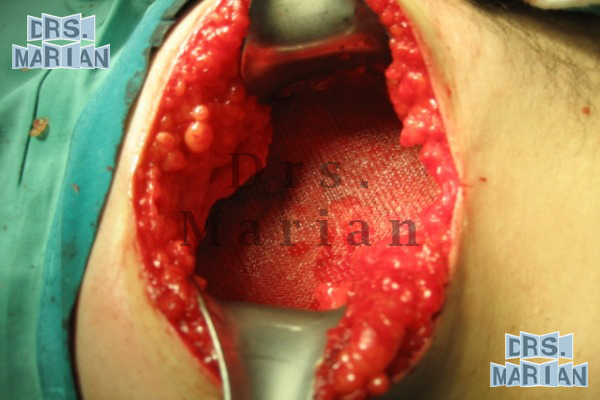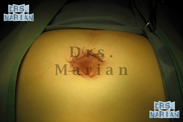 Con incisión a nivel lumbar, se coloca malla de polipropileno que se fija sobre el piso del defecto herniario; dado que uno de los límites es una estructura ósea inexistente y las otras son fallas anatomo-congénitas.